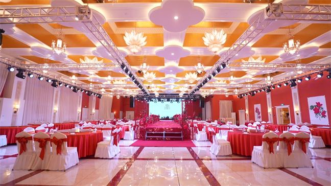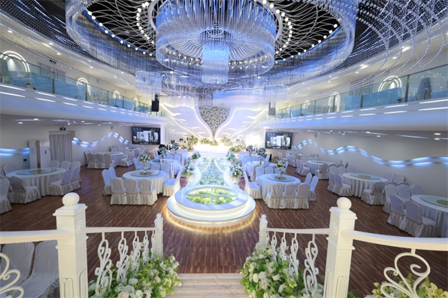 皇宮廳—金碧輝煌、皇宮式裝修,面積1038㎡,層高8.6米,配備愛情階梯、軌道威亞、二層觀禮臺、浪漫燈光秀、旋轉升降舞臺、頭頂天幕連接開合大屏。可承接50桌的大型宴會,也可舉辦600人的大型會議;還可用作會展、車展場地,每逢節(jié)假日還為市民上演文藝節(jié)目。